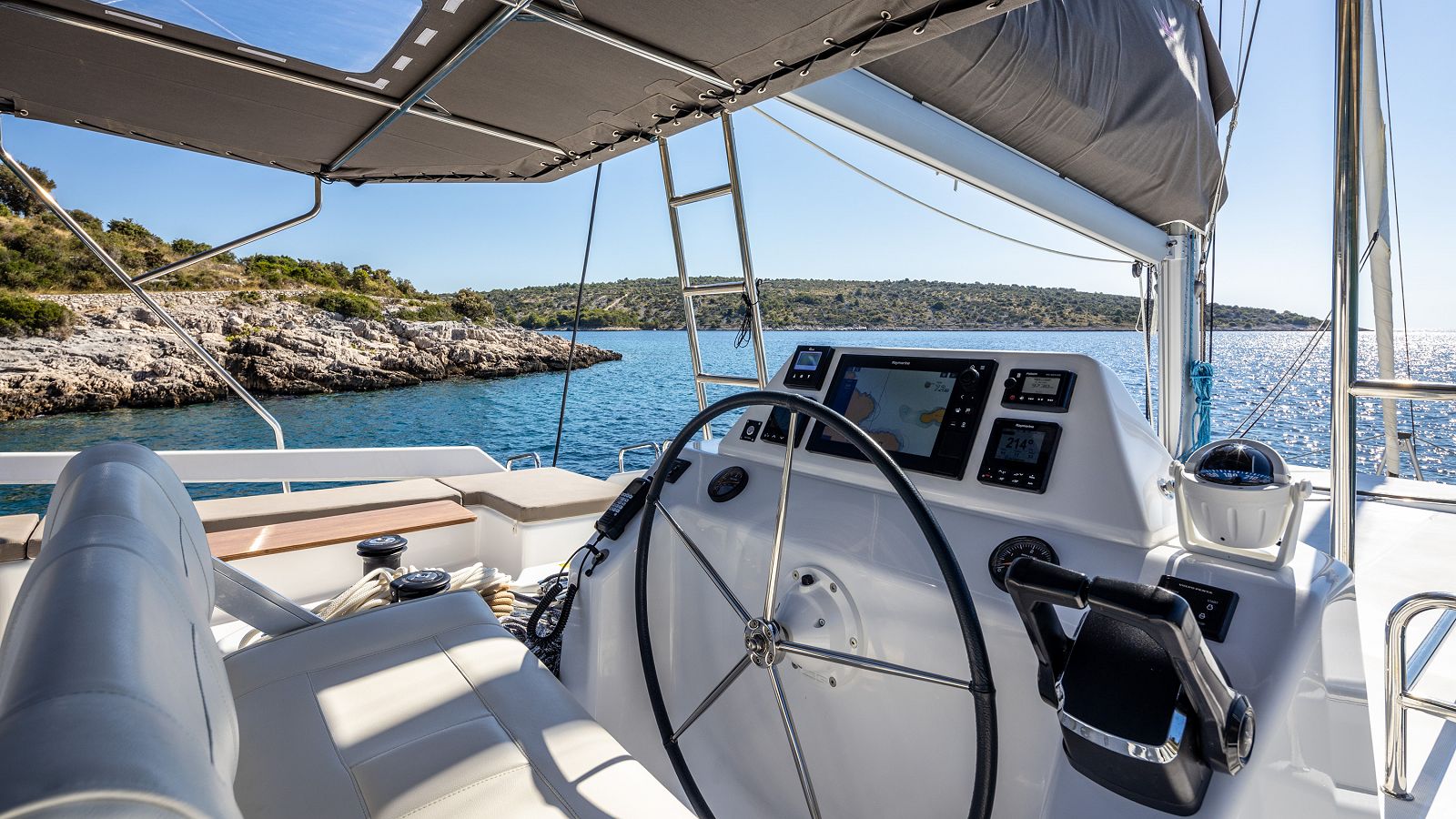 If you’re not hiring a skipper, you need a standard sailing license and a valid VHF license to book and sail the Catamaran MARK.