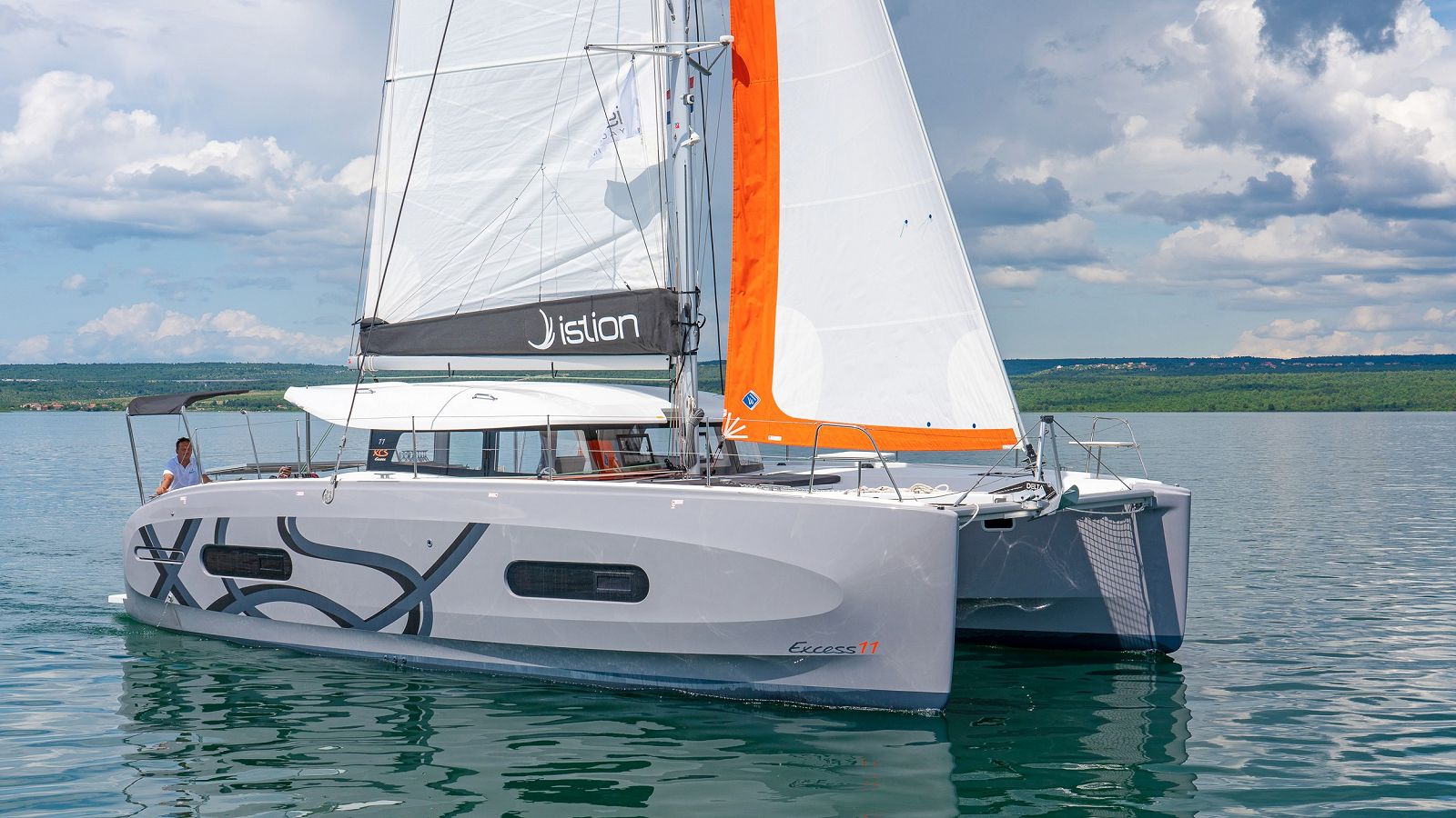 The Excess 11 represents a perfect balance between performance and comfort in the world of sailing catamarans. At 11.4 meters in length, this innovative vessel stands out with its distinctive sporty design and superior handling characteristics. The model features elevated helm stations providing excellent visibility and a direct connection to the sailing experience. With its carefully engineered hull design and optimized weight distribution, the Excess 11 delivers remarkable performance while maintaining stability. The cockpit seamlessly connects to the saloon through large sliding doors, creating an open-plan living space that maximizes comfort and social interaction.