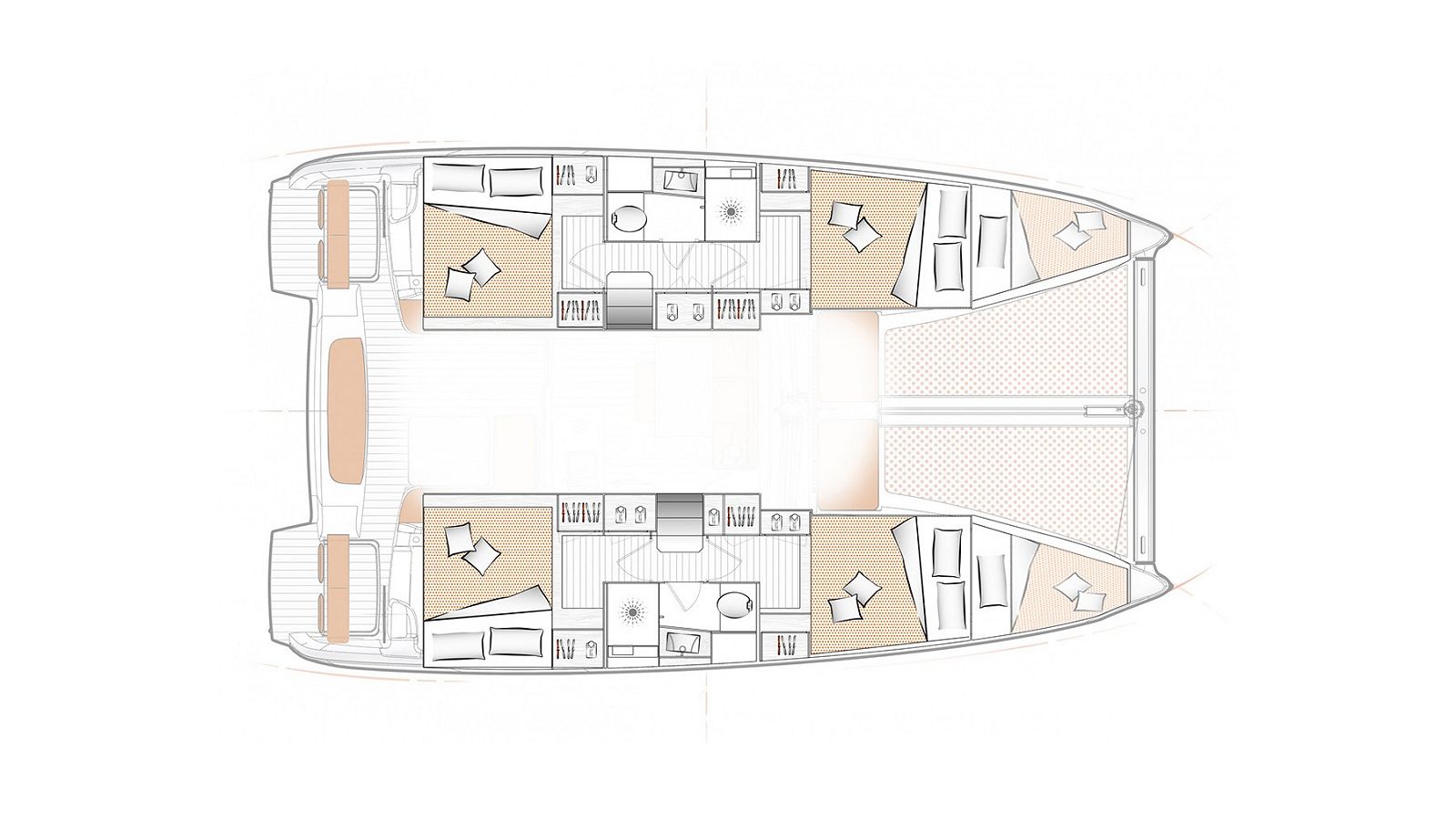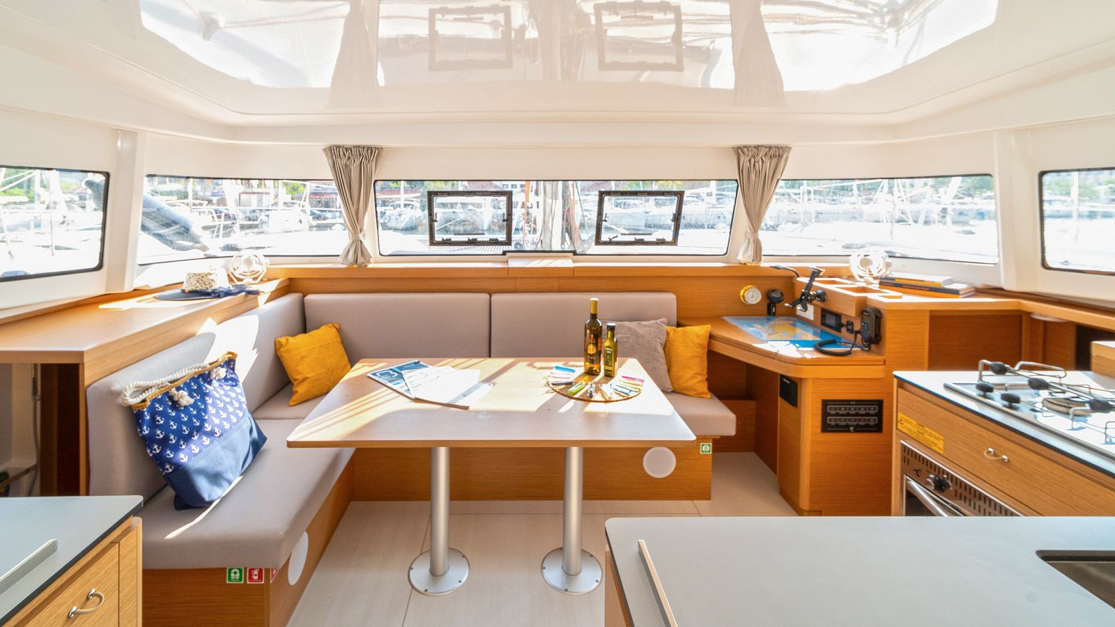 Pillows, blankets, and towels are included in the price. This catamaran is fitted with a classic mainsail and a self-tacking jib. It also has 2x29 hp motors and a 400 fuel tank, so sticking to your itenerary is a breeze even on those low-wind days.