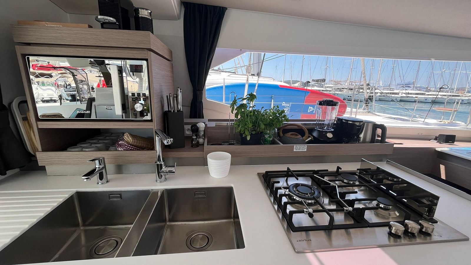 The fully-equipped galley includes cooker, sink and kitchen utensils. coffee maker are also available.