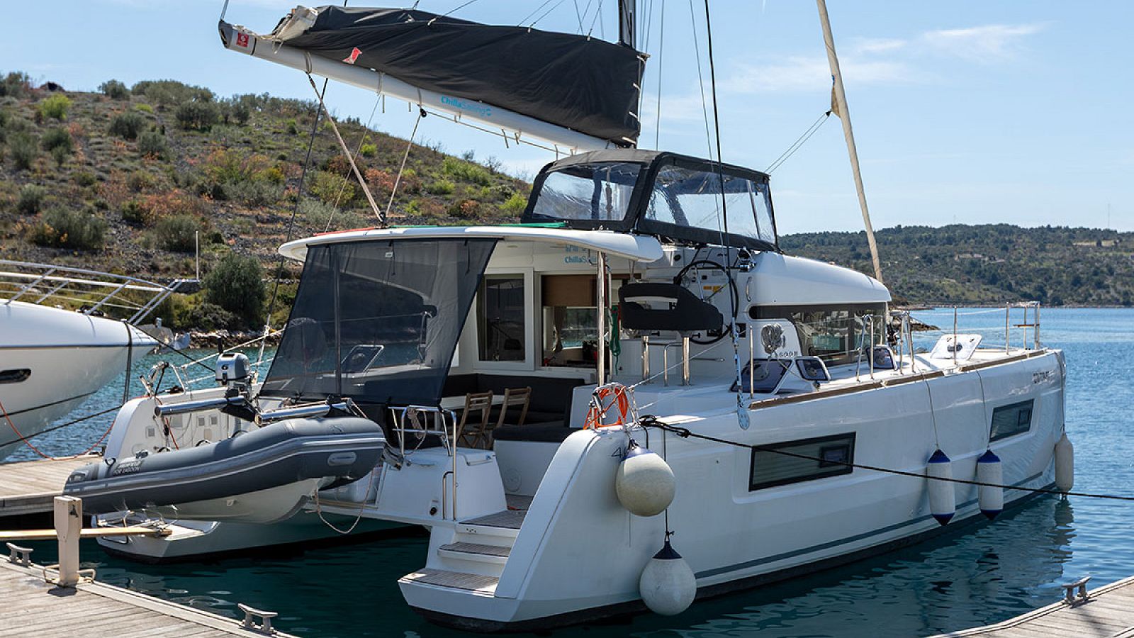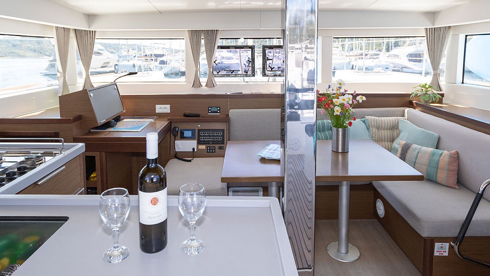 Pillows, blankets, and towels are included in the price. This catamaran is fitted with a classic mainsail and a furling genoa. It also has 2x45hp motors and a 400 fuel tank, so sticking to your itenerary is a breeze even on those low-wind days.