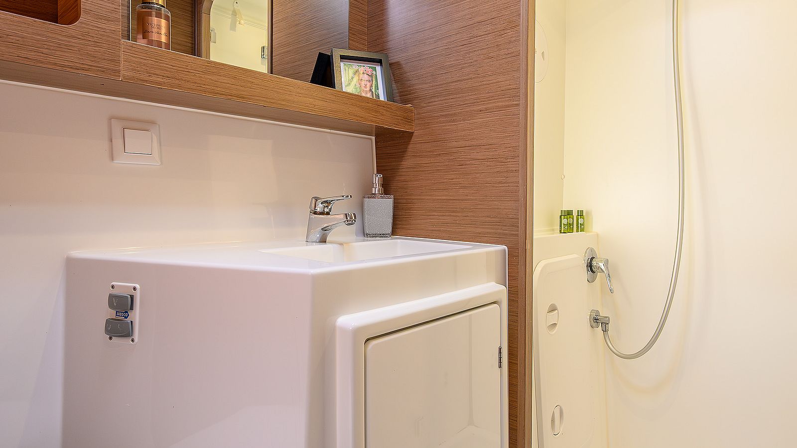 For your maximum comfort, this catamaran has air conditon, heating and generator.