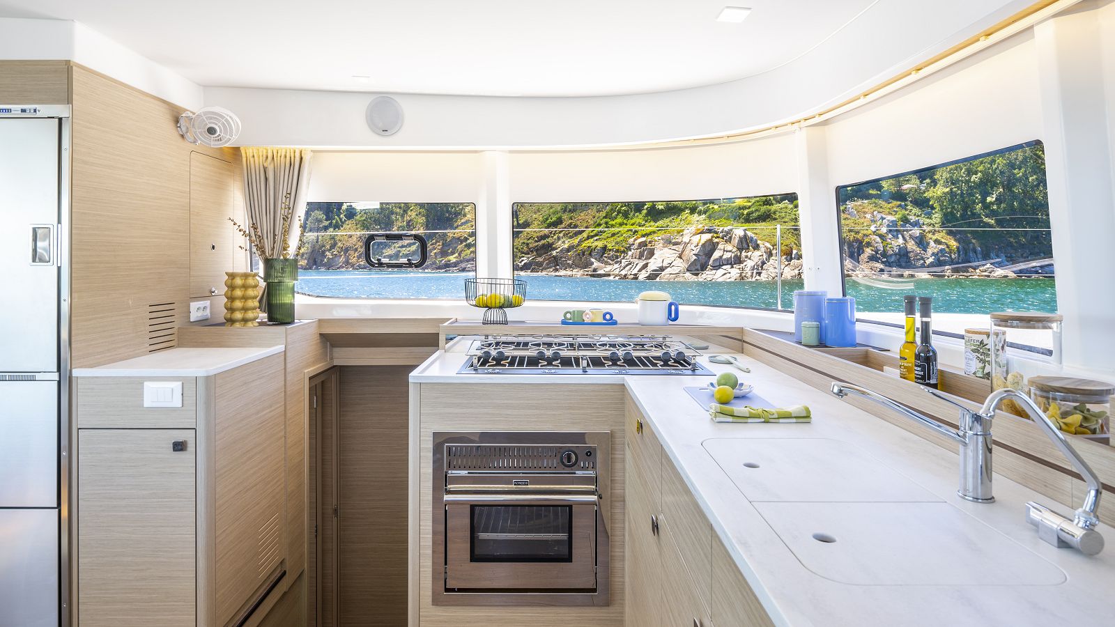 The fully-equipped galley includes cooker, sink and kitchen utensils. ice maker are also available.