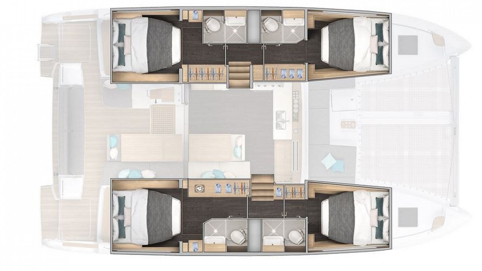 Lagoon 43 - ARIA is a Catamaran built in 2025. She's docked in Port of Split, Croatia.From there, National Park Kornati, Dugi Otok island, and coastal towns of Šibenik and Zadar are a short northbound sail. And if you turn south, you're half a day's sailing from Šolta island, and a bit more from Hvar, Brač, and even Vis island.