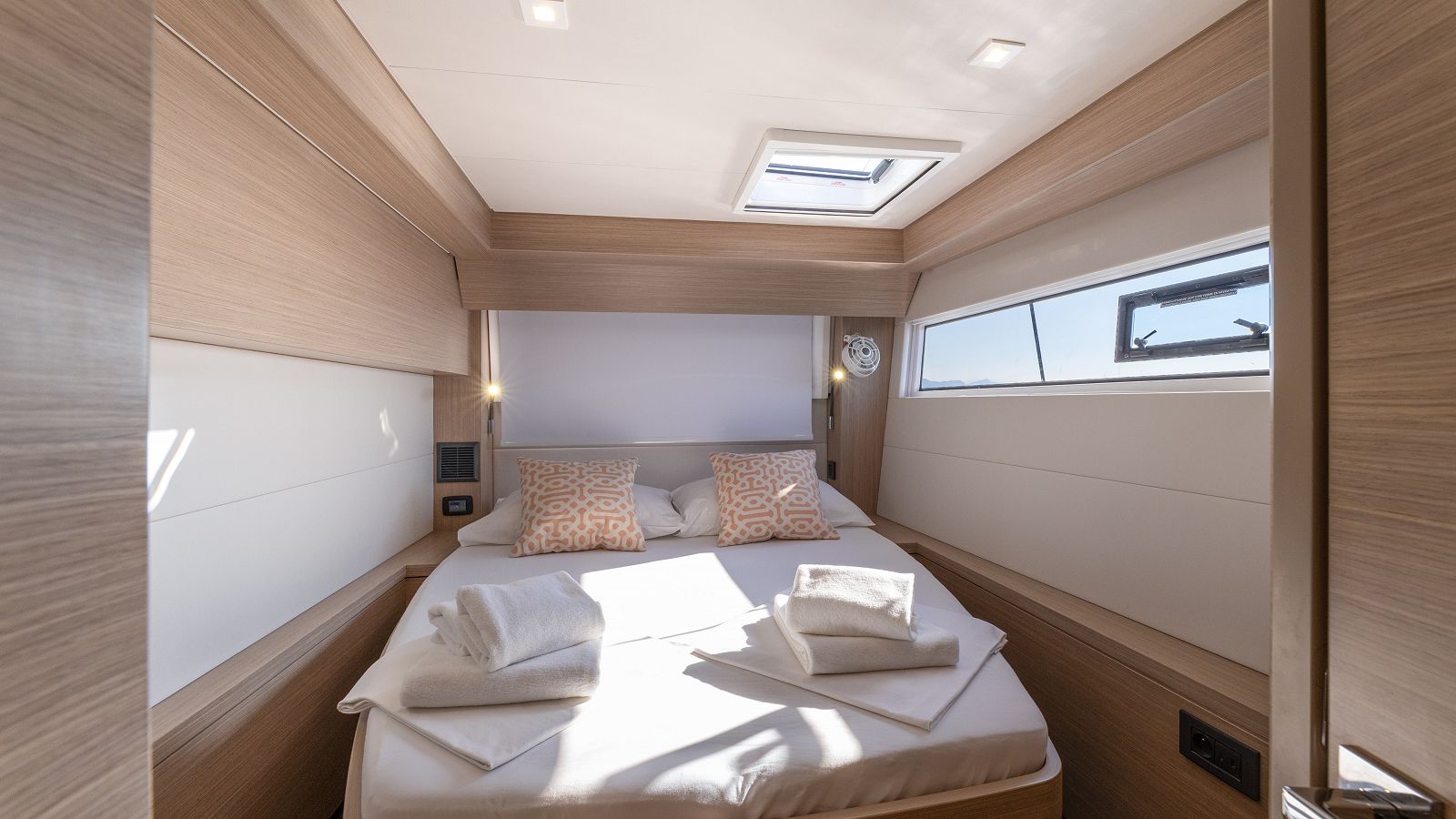 With a skipper onboard, you can lie back and relax under the full sails, leaving the sailing to a pro. If you do decide to take the wheel, you can count on easy and safe navigation thanks to autopilot, teak deck and inverter.