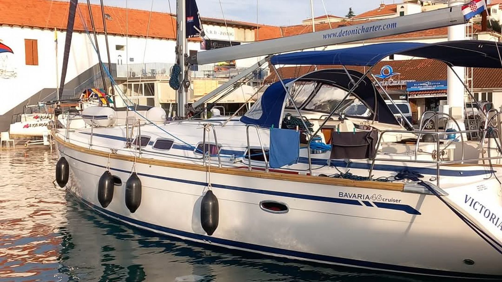 Sailing yacht Bavaria 46 Cruiser - VICTORIA was built in 2007. She's docked in ACI Marina Trogir, Croatia.From there, you're half a day's sailing from Split, and a bit more from Hvar, Brač, and even Vis island. National Park Kornati, Dugi Otok island, and coastal towns of Šibenik and Zadar are a day's northbound sail, and can easily be fitted into your itenerary.