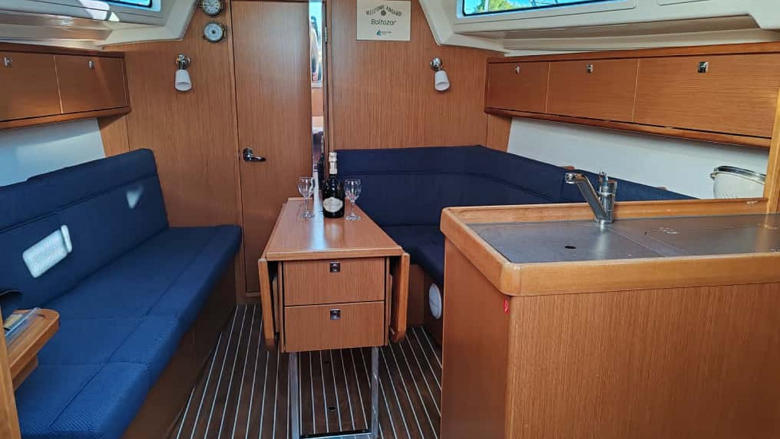 While sailing on Baltazar, you can count on safe and easy navigation thanks to autopilot, bow thruster and plotter. Additional convenience and safety equipment includes bimini and sprayhood.