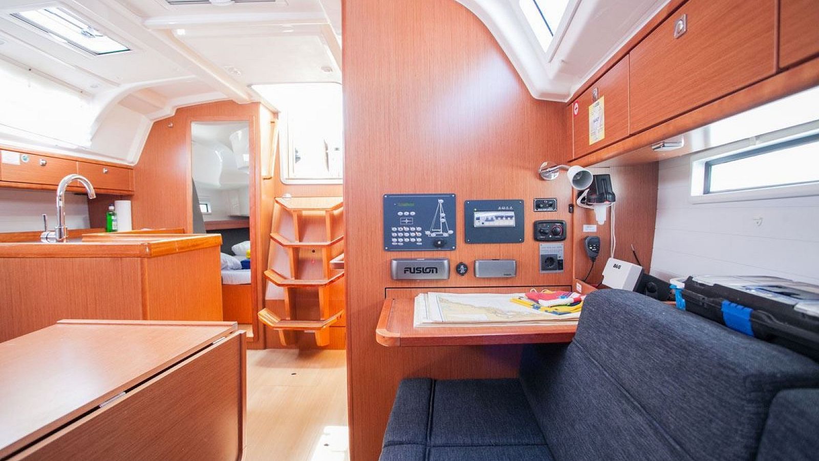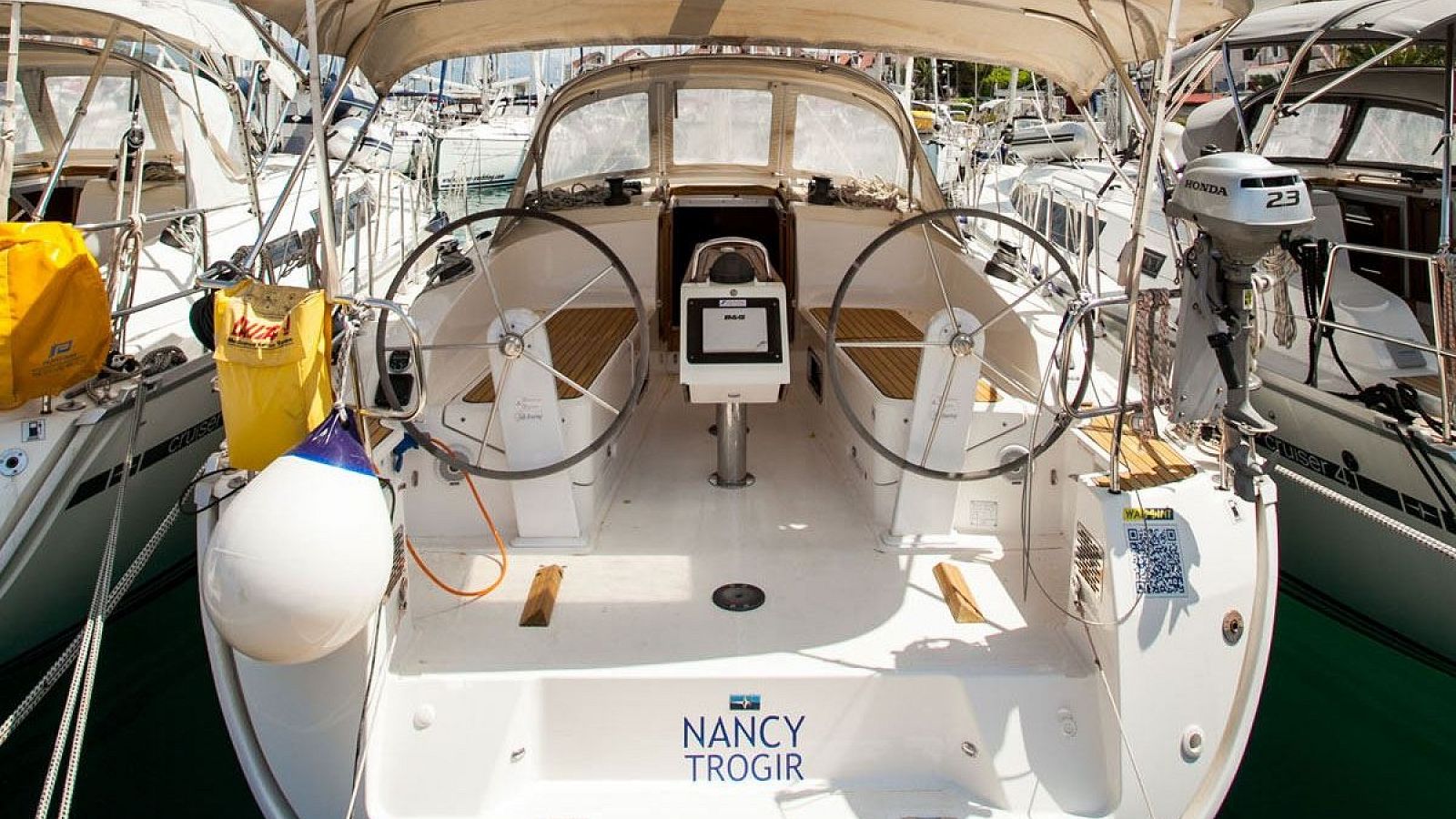 While sailing on Nancy, you can count on safe and easy navigation thanks to autopilot, bow thruster and plotter. Additional convenience and safety equipment includes bimini and sprayhood.