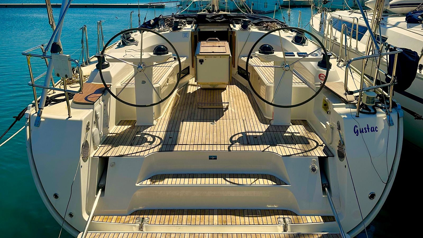 While sailing on Gustac, you can count on safe and easy navigation thanks to bow thruster and plotter. Additional convenience and safety equipment includes bimini and sprayhood.