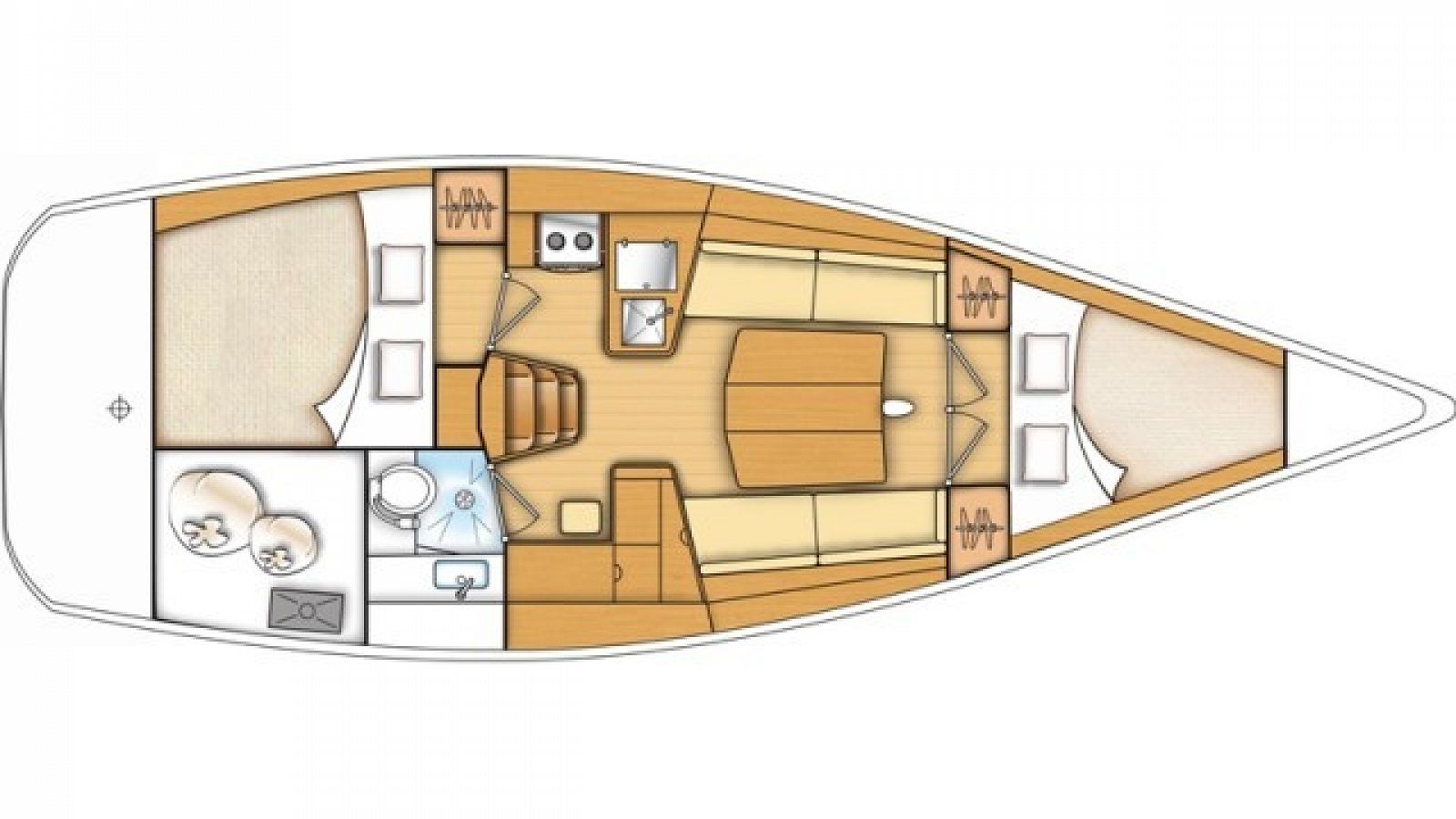 Capricorn accommodates up to 6 guests in 2 cabins. It has 1 toilet.