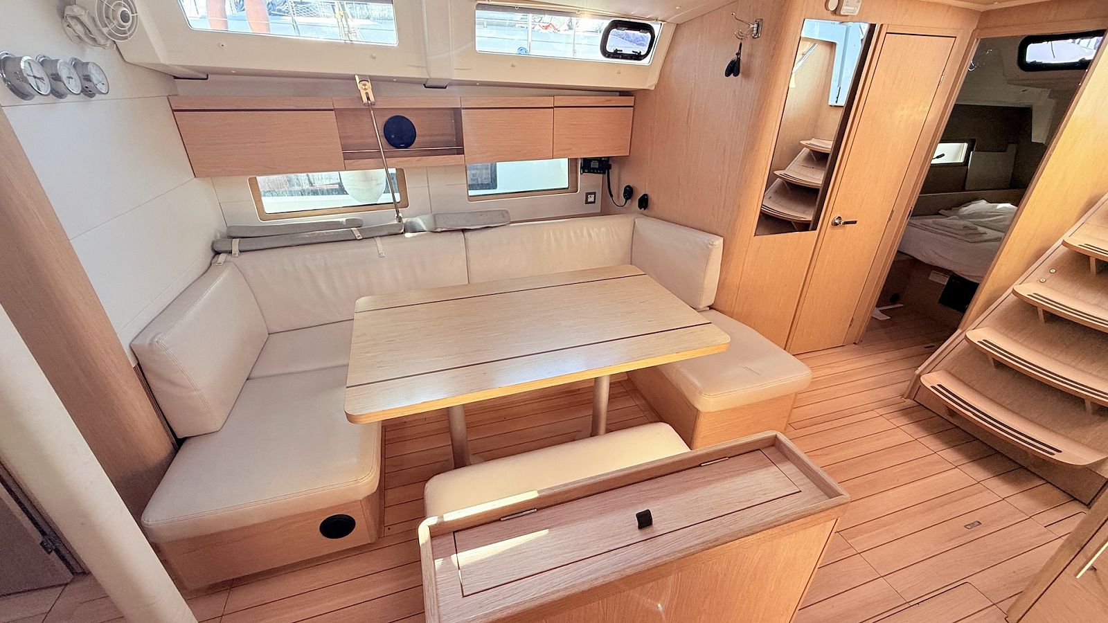 While sailing on Sara, you can count on safe and easy navigation thanks to autopilot, bow thruster and plotter. Additional convenience and safety equipment includes bimini, sprayhood and inverter.