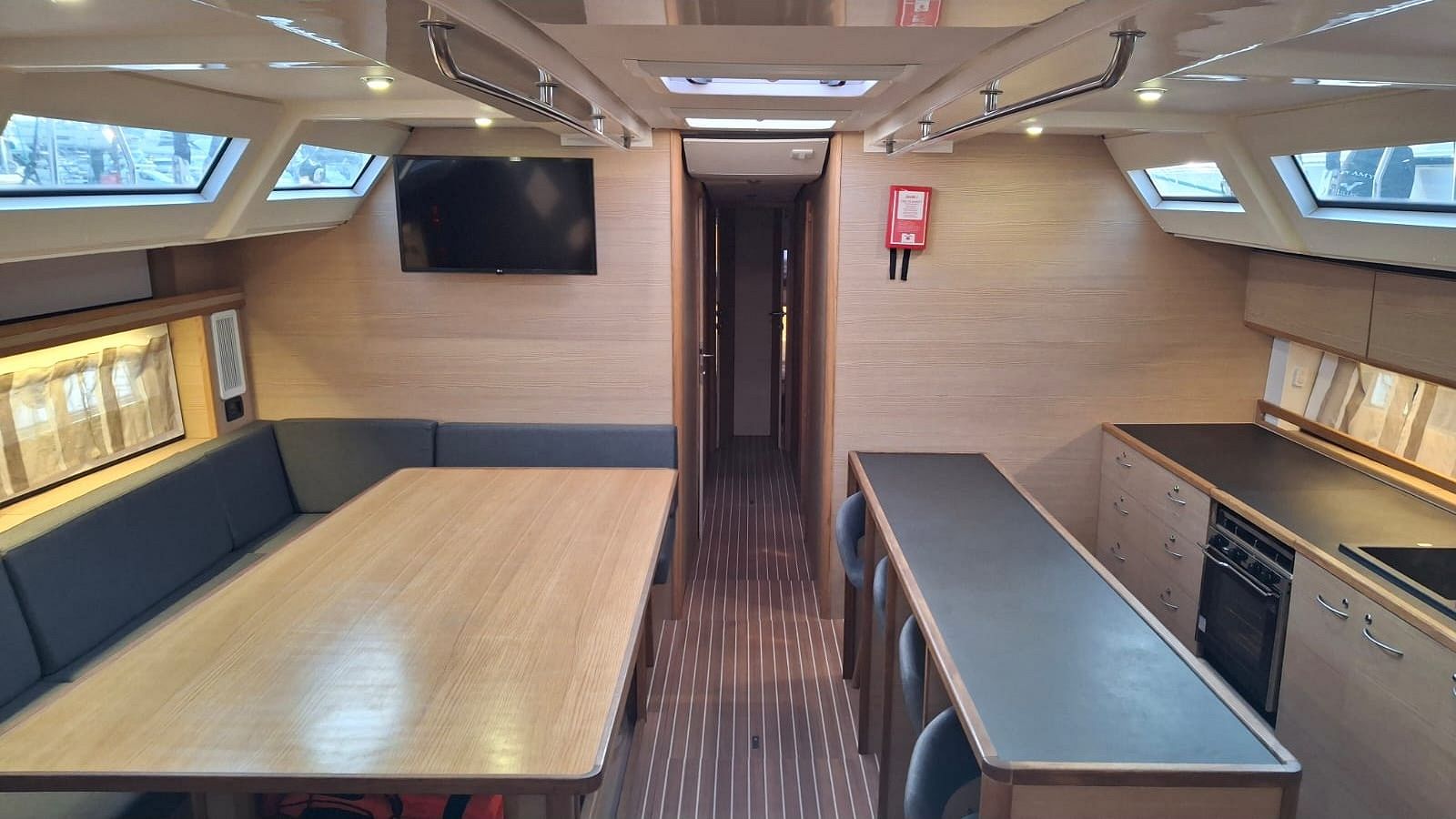 The fully-equipped galley includes cooker, sink and kitchen utensils.