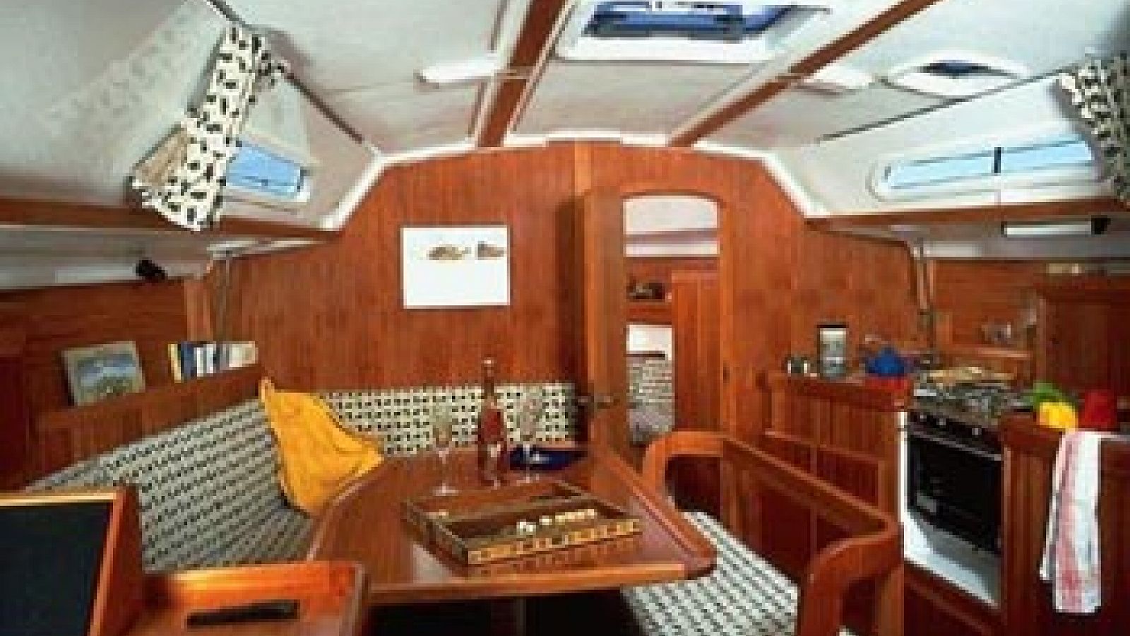 This Sailing yacht is fitted with a classic mainsail and a furling genoa.