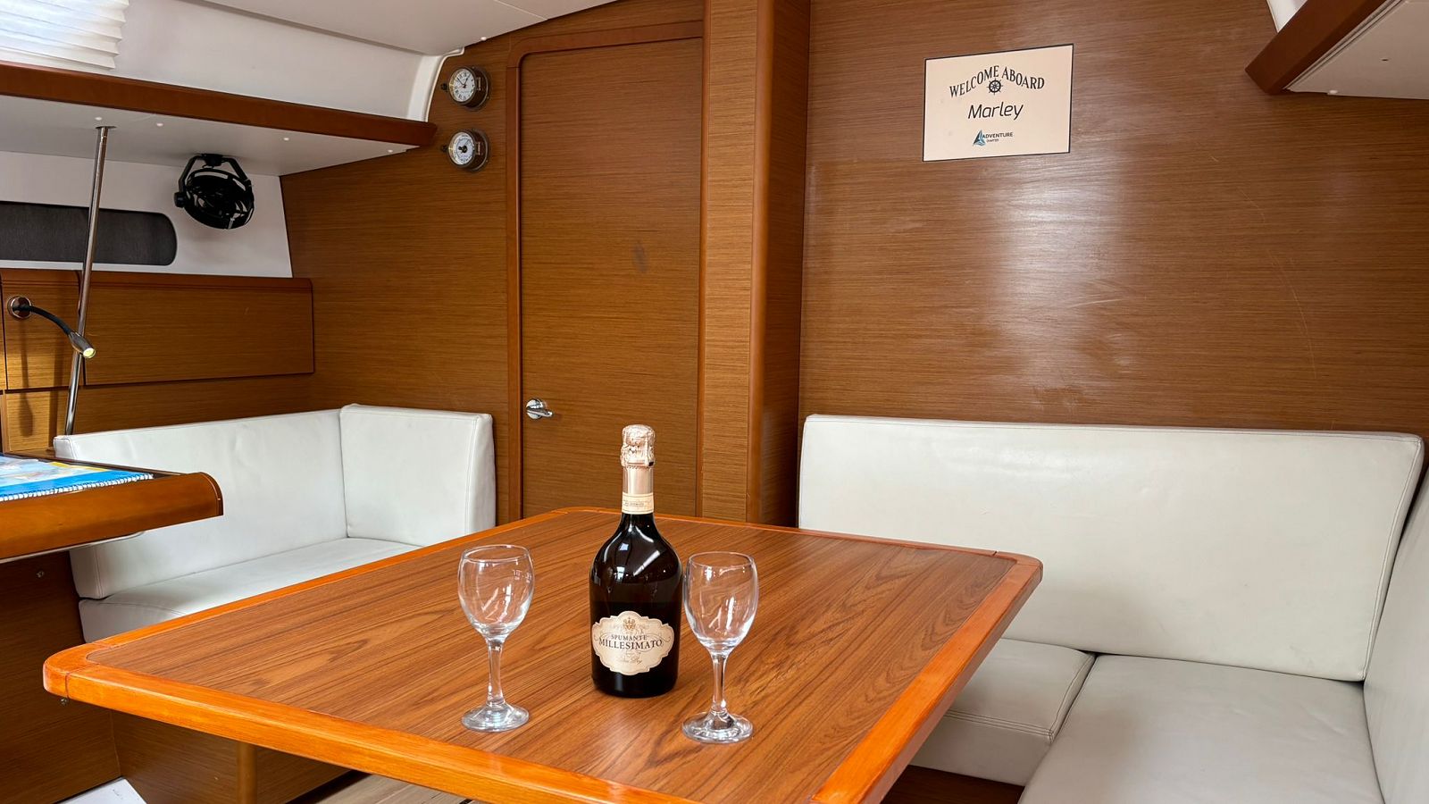 If you’re not hiring a skipper, you need a standard sailing license and a valid VHF license to book and sail the Sailing yacht Marley.
