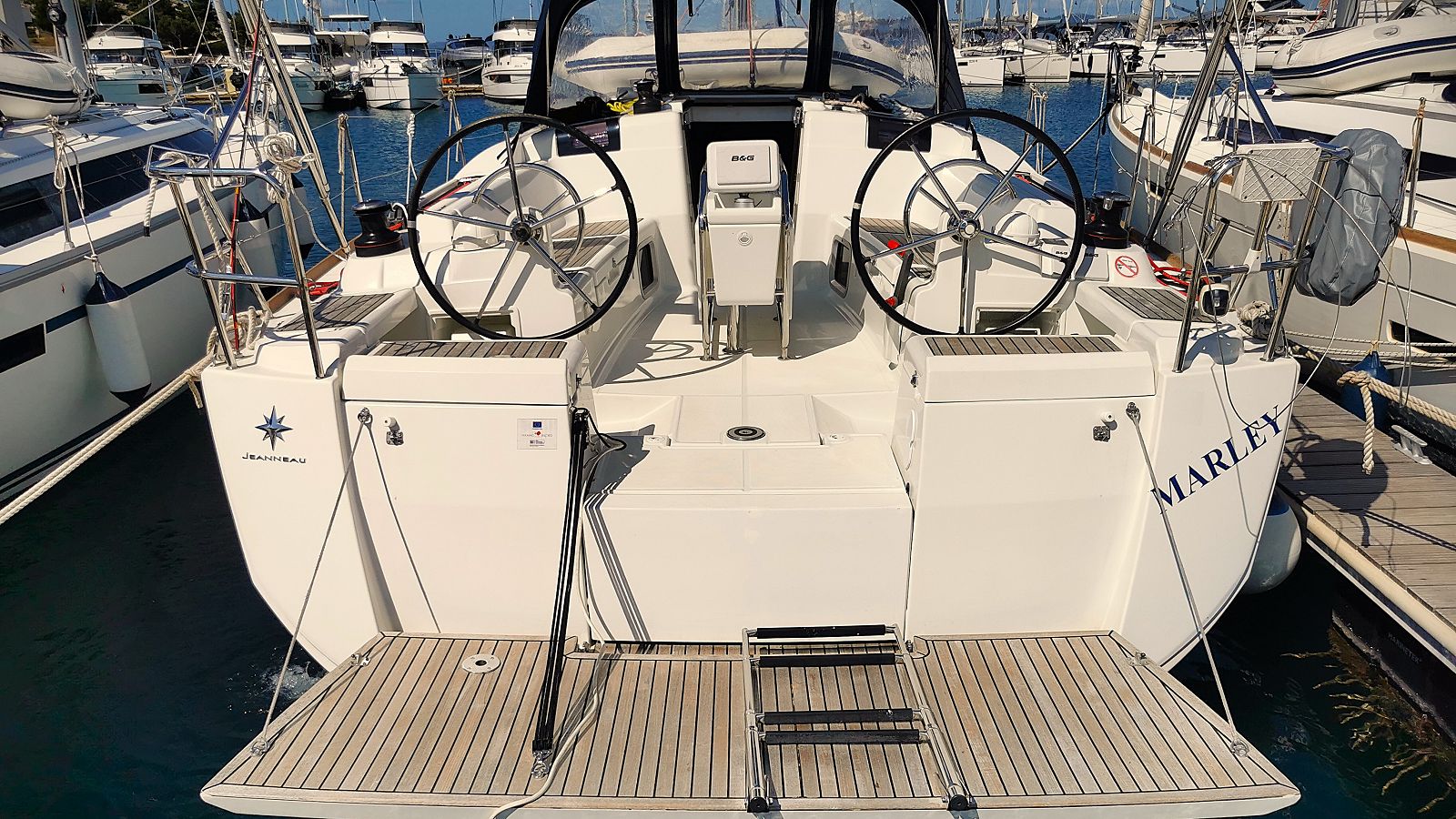 While sailing on Marley, you can count on safe and easy navigation thanks to bow thruster and plotter. Additional convenience and safety equipment includes sprayhood.